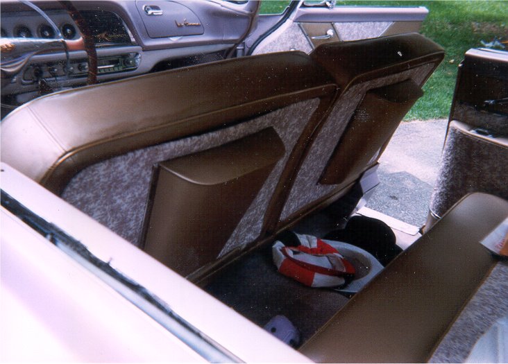 Again, special compartments behind the seats, this time slightly different from the 1955 version, were used for storage of these items. In both cases, the storage compartments featured flap top openings, and were trimmed to match the car's interior. One thing to note is that, while the