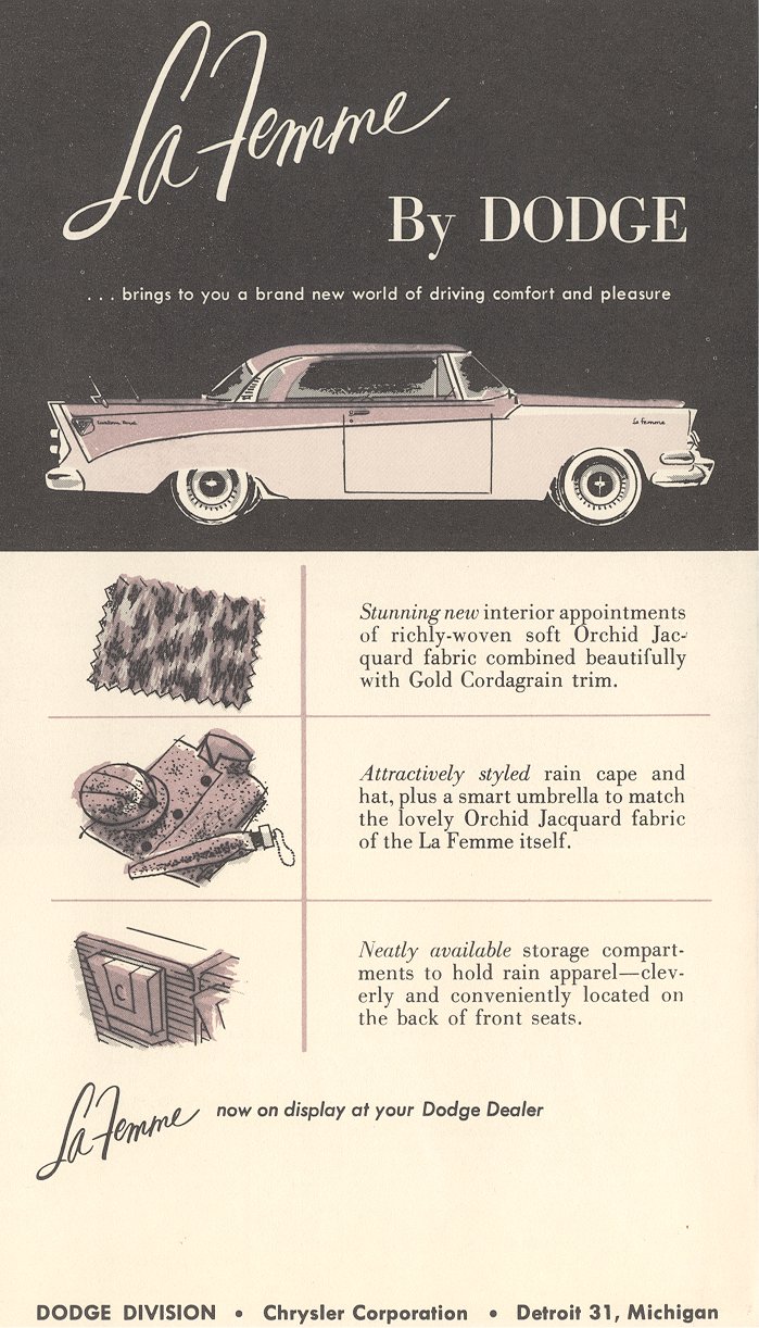 advertising brochures that Dodge made available to dealers to help sell potential female buyers on the La Femme. It is important to note that the 1955